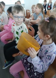 Dravnieki pastāstīja, kādus produktus ražo bites – medu, ziedputekšņus, bišu maizi, propolisu, vasku. Šķiet daudzi no šiem produktiem skolēniem iepriekš bijuši nezināmi. Skolēni uzzināja, ko garšīgu var pagatavot izmantojot medu – medus kakao, smūtijus, ka medus var būt lieliska piedeva biezputrām, pankūkām, ka medus ir gards, veselīgs un dod enerģiju. Skolēni aktīvi iesaistījās sarunā atbildēja uz jautājumiem, par veiksmīgākajām atbildēm saņēma mazas pārsteiguma dāvaniņas - piespraudes un lineālus.