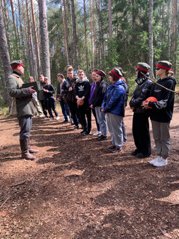 Mūs ieinteresēja apraksts par Ķemeru Nacionālā parka darbinieku piedāvāto piedzīvojumu spēli. Mēs sapratām, ka “tā ļaus ceļot laikā un atgriezties 100 gadus senā pagātnē, kur pāri purvu klajumiem atblāzmoja kauju ugunis. Spēles noteikumi paredz tādus apstākļus, kādos dzīvoja un cīnījās latviešu strēlnieki. Tikai paši drosmīgākie un veiklākie spēs izkļūt no vācu gūsta… “ Tā 2023. gada 27. aprīlī labos laikapstākļos devāmies diezgan tālā ceļā- uz Ķemeru Nacionālo parku, lai tiktos ar spēles organizatoru Māri, kas izrādījās interesants stāstītājs un runīgs cilvēks. Visiem patika un bija saprotams viņa stāstījums.