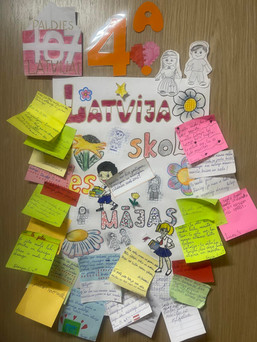 “Es dzīvoju Latvijā, te ir manas mājas, te ir mana ģimene, draugi, skola. Ar saviem vārdiem, darbiem un attieksmi mēs visi kopā veidojam skolas vidi, kurā atrodamies. To varam veidot par vietu, ar kuru paši lepojamies,” tik personīgs un patriotisks vēstījums svētku mēnesī uzrunāja ikvienu skolēnu un pedagogu, aicinot iesaistīties radošo plakātu veidošanā, sagaidot Latvijas Republikas Proklamēšanas 107.gadadienu. Idejas iniciators, vizuālās mākslas pedagogs Evita Arāja, apliecina: “Šajā izaicinājumiem bagātajā laikā svarīgi ir apvienoties un aktualizēt jautājumus par to, kas mums ir skola, kas mēs tajā esam, ko mums tā dod un ko mēs tajā paši radām. Tas ir kā liels mehānisms, kura motorā ( sirdī ) mēs katrs esam kā mazs, nozīmīgs zobratiņš. Lai tas virzītos uz priekšu, mēs katrs dodam savu pienesumu: ar vārdiem, ar darbiem, ar attieksmi, ar prieku un ar aktīvu iesaistīšanos ikdienas dzīvē.”